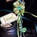 - Materials: red and spotted feathers, brass nib, glass dram bottle and lid, ink, box, labels, ribbon