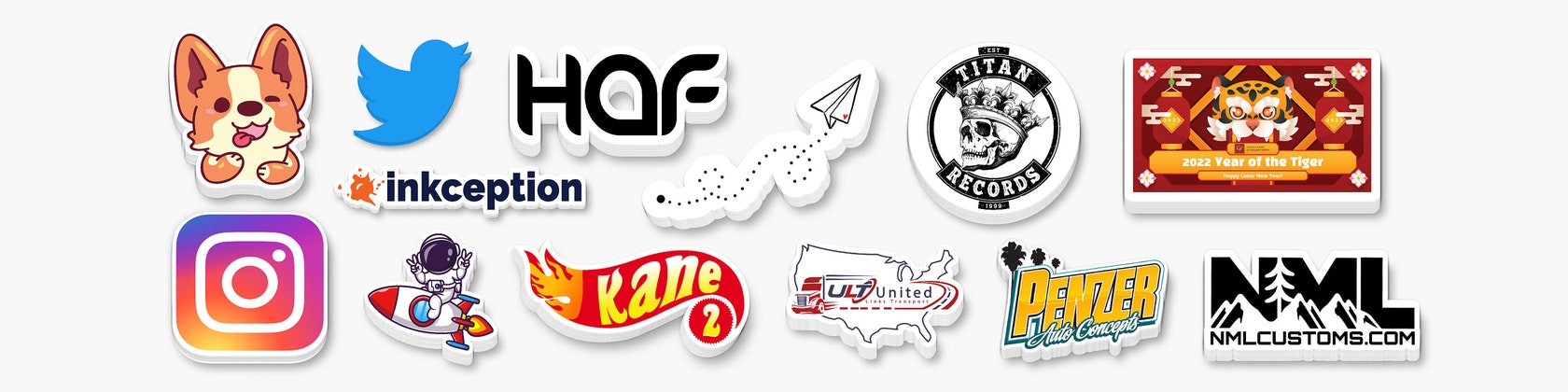 Our printers are unique that we are able to offer an embossed/raised ink that is printed over certain parts of the artwork. This gives the sticker/decal a textured feel with a 3D effect to make certain parts of the sticker/decal pop. Check out our pre-designed stickers for the option