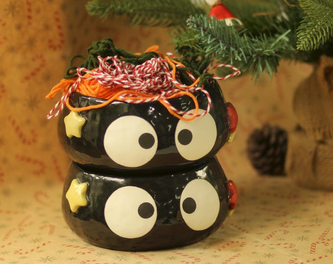 Cuenco de hilo de cerámica hecho a mano con diseño de hollín (pedido por adelantado), decoración del hogar, regalo único de anime, regalo de San Valentín, regalo para novia (alto: 3,2 cm, ancho: 4,7 cm)