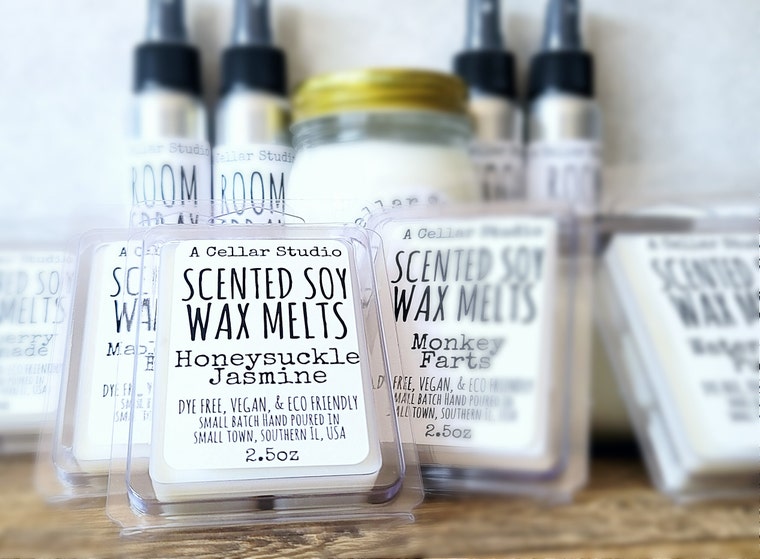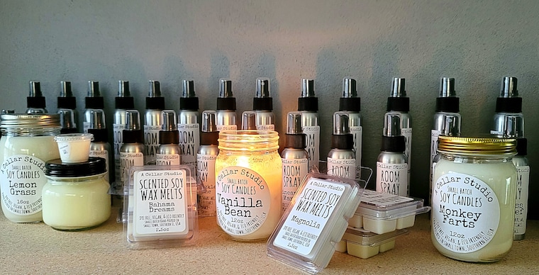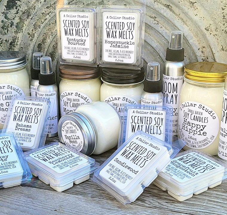Natural soy candles, wax melts, rooms sprays, vinyl work & more!