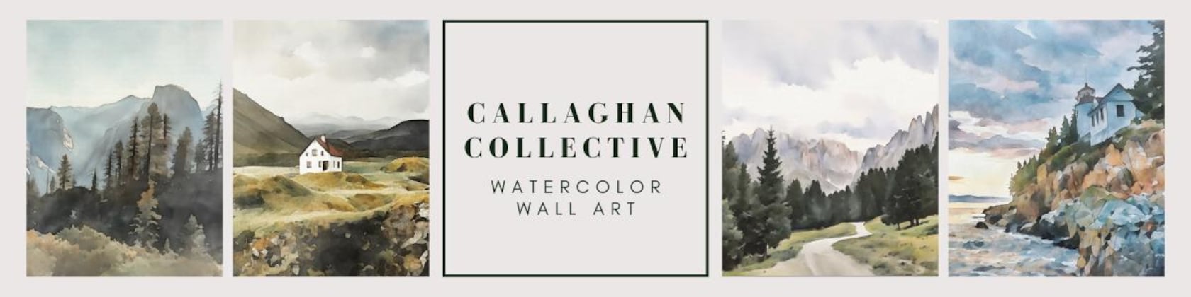At Callaghan Collective, you’ll find high-quality watercolor travel prints inspired by landscapes from around the world. Each design starts with a photo I’ve taken myself (usually dragging my husband out of bed at sunrise) and is carefully edited into a soft, painterly image. The final print is produced on cold press watercolor paper with archival giclée inks for lasting beauty.