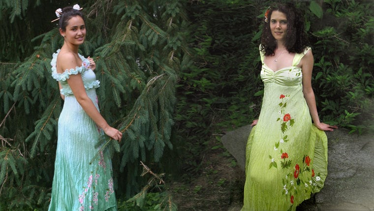 Hand panted silk dresses -