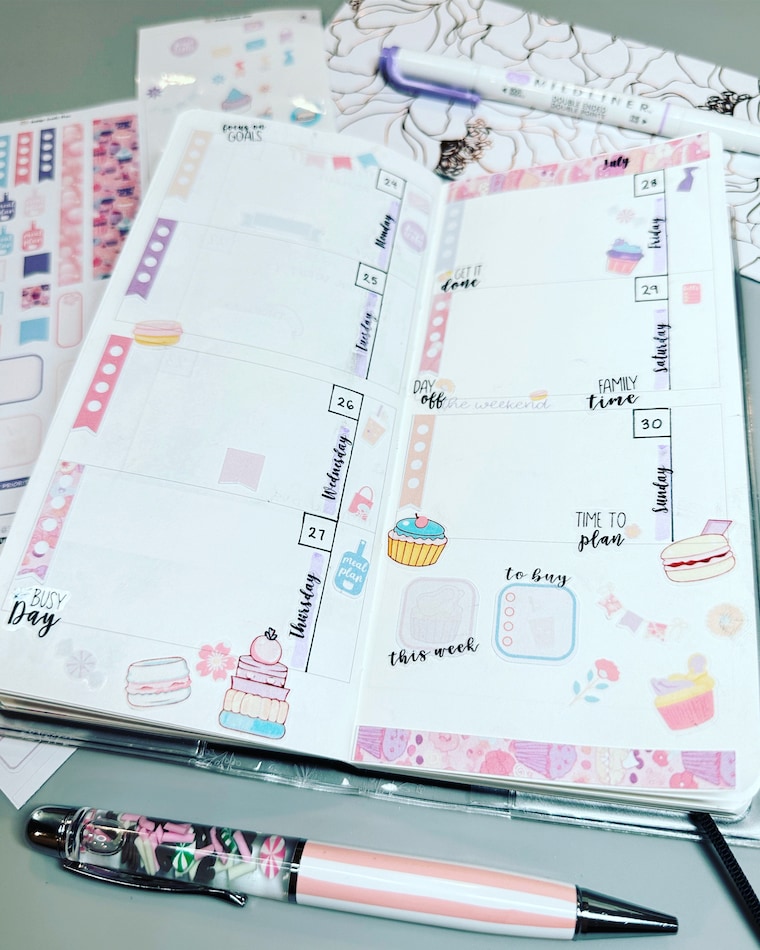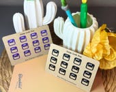 Para agendas de bolsillo de tamaño pequeño como Hobonichi Weeks y Erin Condren, las mido a 7 pulgadas de alto por 3 pulgadas de ancho (consulte el video tutorial para obtener más detalles. Para agendas más grandes de 7 x 9, como Happy Planner y Erin Condren, las mido hasta la altura máxima para la impresión Cricut y luego corte a 7,79 pulgadas de alto. Cuando se usan con planificadores de mayor tamaño, estos diseños son una excelente manera de agregar pegatinas de productividad a su publicación semanal minimalista.