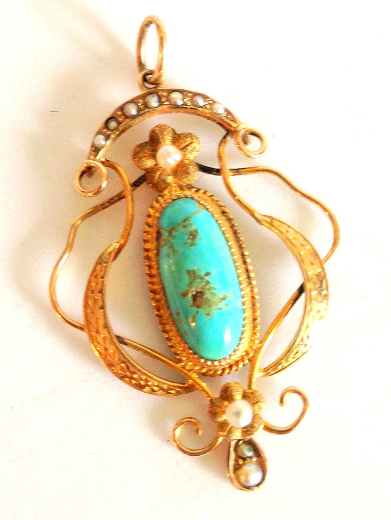 Victorian Gold Pearl Rare Persian Turquoise -