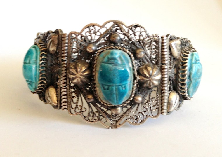 Art Deco Egyptian Revival Scarab Filigree -