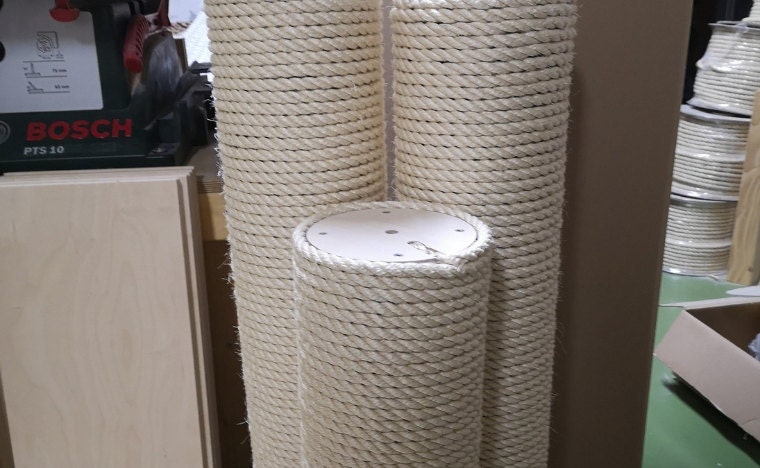 We've opted for the 12mm thick version as it's the right size so that the cats could fully punch through with their claws and also the thicker rope is longer-lasting, more luxurious looking, and decorative. They are 100% natural, untreated, and toxin-free. They are economically sourced and biodegradable.