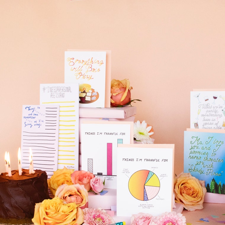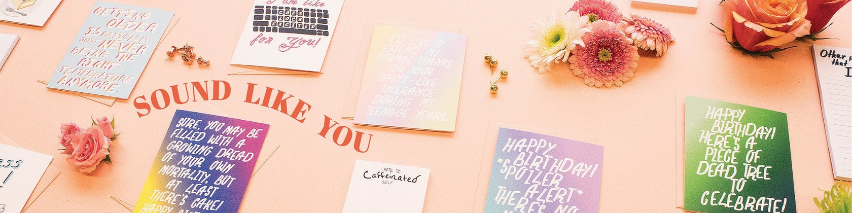 Kein Last-Minute-Durchforsten mehr durch den Stapel kostenloser Karten, die Sie von dieser Wohltätigkeitsorganisation erhalten haben, oder Niesen auf dieser Lebensmittelkarte, versuchen, ihren uninspirierten Text auszugleichen, indem Sie mit Glitzer verputzt werden. Sie haben etwas Besseres gefunden. Unsere Designs wurden im Buffalo Magazine, Stationery Trends, Buzzfeed und The Huffington Post vorgestellt, um nur einige zu nennen. Bis heute hat Meredith eine persönliche Sammlung von über 1.500 Grußkarten zusammengetragen, also vertrauen Sie uns, wir kennen ein gutes Stück Schneckenpost, wenn wir es sehen. Sind Sie bereit, mit dem Schreiben zu beginnen?
