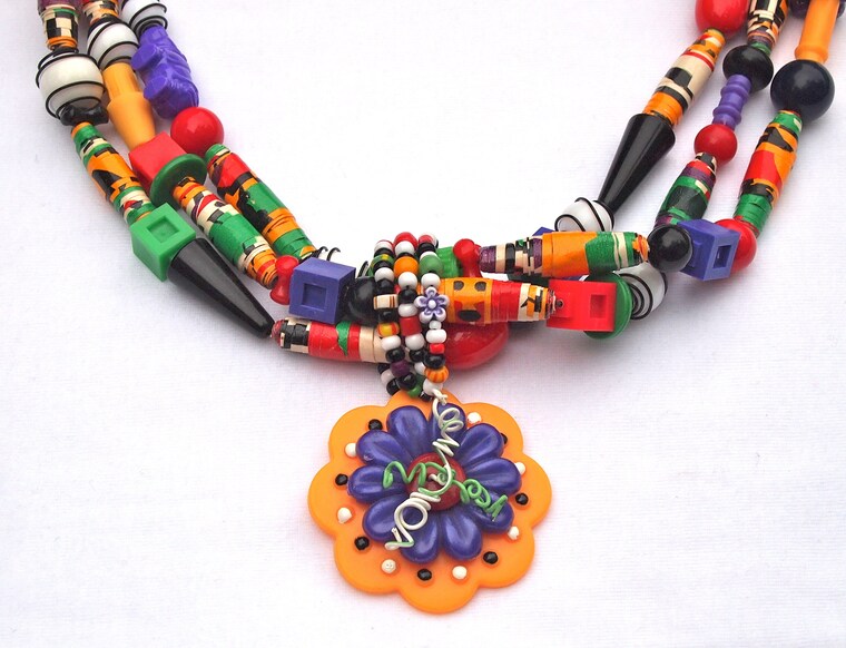 I use a variety of recycled and repurposed materials to create colorful, eye catching jewelry.