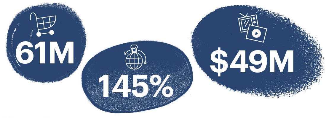 - International sales increased 145% compared to the same time last year, driven by increased international marketing. The United Kingdom is the strongest growing market outside the United States.