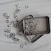 A set of 6 enamel ring markers in white and mint green to track the increases and decreases in your knitting project!