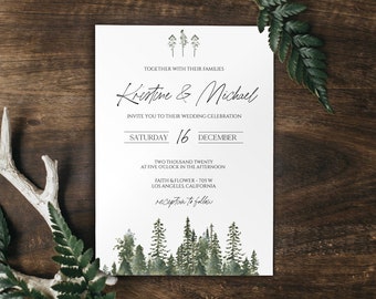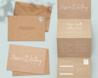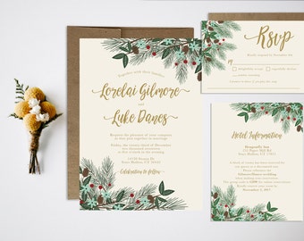 Winter Wedding Invitations, Handmade Winter Wedding Invitations, Kraft Rustic Wedding Invitation, Christmas Winter Wedding Rustic Invitation