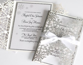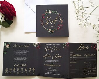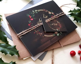 A unique handmade wedding invitation with every attention to detail given that makes an elegant Winter or Christmas Wedding!