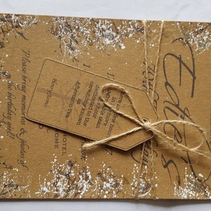 A rustic kraft invite that is both printed, hand painted and delicately hand glittered on beautiful 300gsm Kraft Card to add that touch of rustic charm to a Winter Themed Rustic Wedding.
