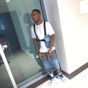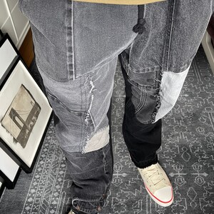 2XL Denim shabby harem pants waist 37", Patchwork baggy jeans, Unisex denim trousers, Street fashion yoga pants, Handmade from Ukraine