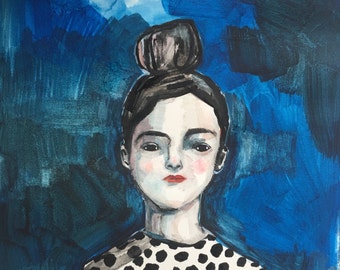 Painting of women: Dreamer - oil painting minimalist art - figurative female art - unique gift
