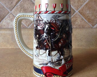Budweiser Beer Stein - Holiday Collection "B" Series 1986 - Collectible Mug - Kitchen Decor