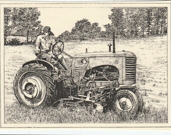 Massey Harris 81-This 6-pack of blank, ivory cards with matching envelopes features a pen-and-ink drawing of a Massey Harris 81 Tractor