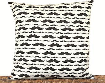 SALE 12.00 Mustaches Pillow Cover Cushion Black Beige Decorative Fathers Day Gift for Him Man Cave Decor 18x18