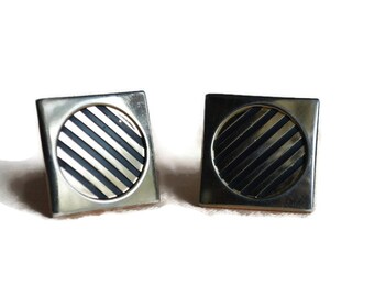 Vintage SWANK Gold Tone Cuff Links Classic Striped Design Circle in Square Shape - Made in the USA