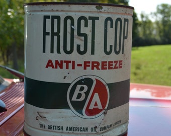 Vintage Anti-Freeze FROST COP Empty One Gallon Can Automotive Advertising Collectible From BA Oil - Please Read Full Description