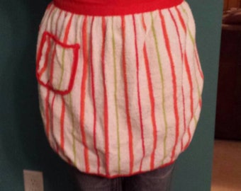 Vintage Terrycloth Apron with One Small Pocket - Red and Yellow Colors - Kitchen Baking Accessory