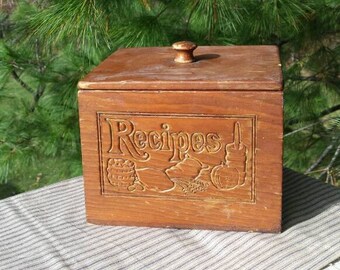 Wooden Recipe Box with Non Hinged Lid - Vintage 1970's - Farmhouse Kitchen Decor - Kitchen Recipe Storage