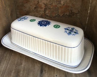 Amcrest Potomac Butter Dish Ironstone American Heritage Vintage Blue & Green - #5409*