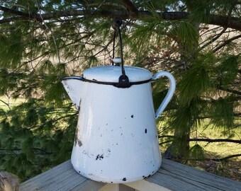 Cowboy Coffee Pot Large White Enamelware Campfire Coffee Pot with Lid / Farmhouse Decor