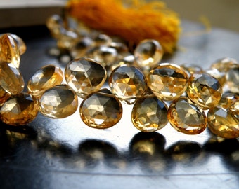 Citrine Gemstone Faceted Heart Briolette AAA Yellow Top drilled 7mm 27 beads 1/2 strand