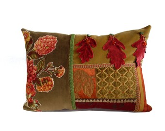 Hand Painted Glass Vase Sunflower Botanical Home decor Orange green Gold Kitchen Patio Decor - Decorative Glass Art