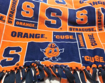 CLEARANCE, Fleece Throw, Syracuse Fleece Throw, Small Blanket, Double Sided, Hand Tied, Orange and Blue, NY College Throw