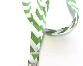 CLEARANCE, Lime Green Chevron Stripe Fabric Lanyard, ID Badge,Cell Phone, Key Holder