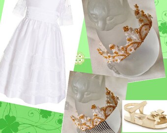 Crown, Mini Crown, Princess Crown, Holy Communion, Wedding, Flower Girl, Costume Ideas, Party Crown, Ballet, Gold and White