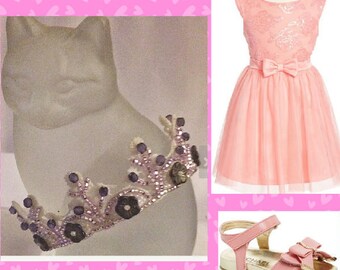 Crown, Mini Crown, Princess Crown, Holy Communion, Wedding, Flower Girl, Costume Ideas, Party Crown, Ballet, , Pink