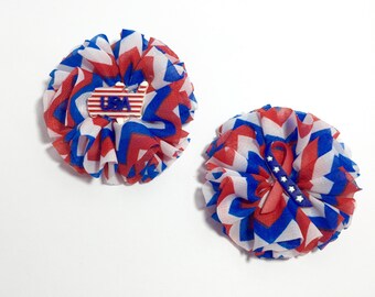 Chiffon Flower Patriotic Red, White and Blue Brooch or Hair Clip Fourth of July, Election Day