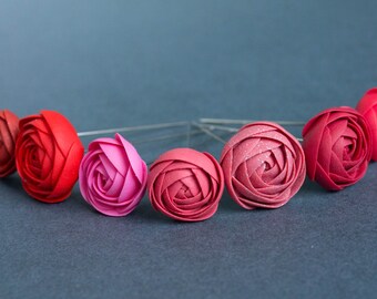 Red Pink, Set of 7, Decorative Stick Pins, Trinket, Corsage, Scrapbooking, Hat, Sewing, Cardmaking