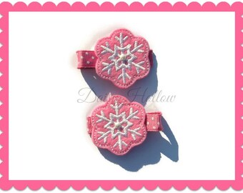 2 Pink Snowflake hair bow clips no slip felt holiday girls Christmas snowflakes accessories toddler baby accessory bows holiday winter