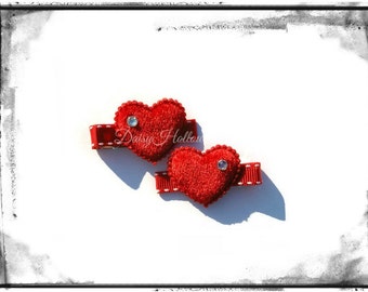 2 Red Heart girls hair clips no slip hair clip Valentine's Day children accessories toddler baby accessory bow bows