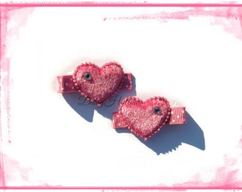2 Pink Heart girls hair clips no slip hair clip Valentine's Day children accessories toddler baby accessory bow bows