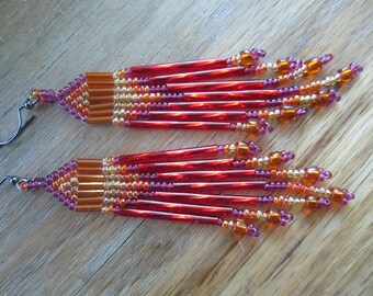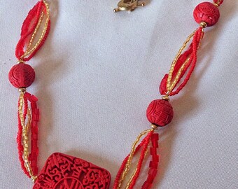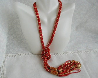 Glittering Gold and Red Spiral Rope Bead & Tassel Lariat~Lariat Necklace~Red and Gold Necklace~Christmas Necklace~Long Beaded Necklace