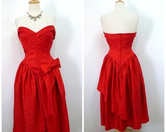 Vintage 80s Dress Red Sweetheart strapless I. Megnin Prom Cocktail Party Wedding Small