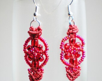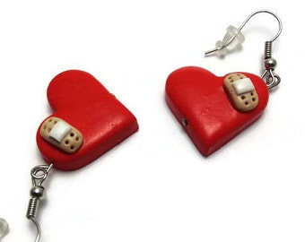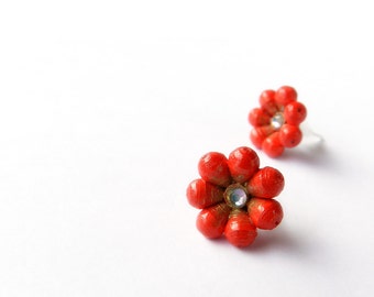 Red and gold stud earrings handmade with paper flowers 15 mm with strass Valentine gift idea