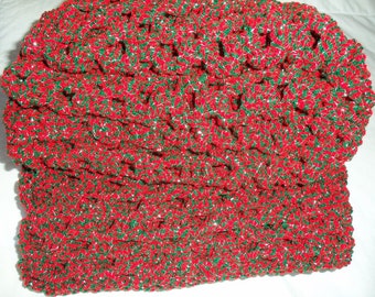 Handmade Holiday Afghan Crochet Blanket 36" x 48", Traditional Red and Green Christmas Home Decor, Holiday Lap Afghan, Chair Cover Throw