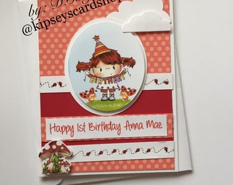 Happy 1st Birthday or Guess Who is Turning 1 Birthday Card Created with a C.C. Design. Happy Birthday. Girl Birthday Card