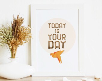 Printable gift, Today is your day | Origami art, Office decor, PDF art, Print at home, Circle Wall Art, Orange Home Decor, Bird Wall Art, A3