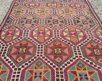 Turkish Kilim Rug, Antique Colorful Kilim Rugs, Flatwoven Kilim Carpet, Area Rug, kelim rug, 65'' x 112'' floor rug, area rug, living room