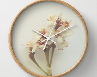 Wall Clock, Minimalist Design, Modern Home Decor, Botanical Macro Photography, Floral Decor, Soft Pastel, Beige Cream Green