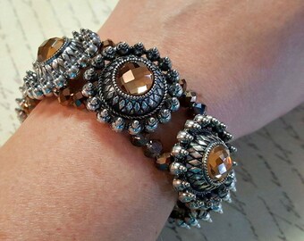 Brown Stretch Bracelet ~ Antique Silver Stretch Bracelet ~ Tibetan Silver and Amber Stretch Bracelet ~ Winter Jewelry ~ Statement Jewelry