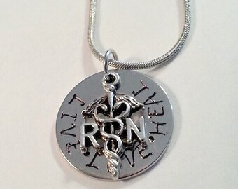 Hand Stamped Live Love Heal RN Necklace ~ Personalized RN Necklace ~ RN Necklace with Birthstone ~ Nursing Graduation Gift ~ Nurse Necklace