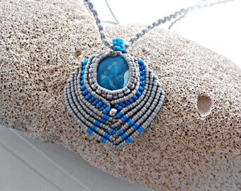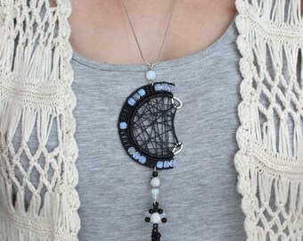 BOHO / TRIBAL / HIPPIE Macrame Necklace, Moonstone Beads, 925 Silver Chain, Silver wire, Black Tassel, Boho Necklace, Women Jewellery